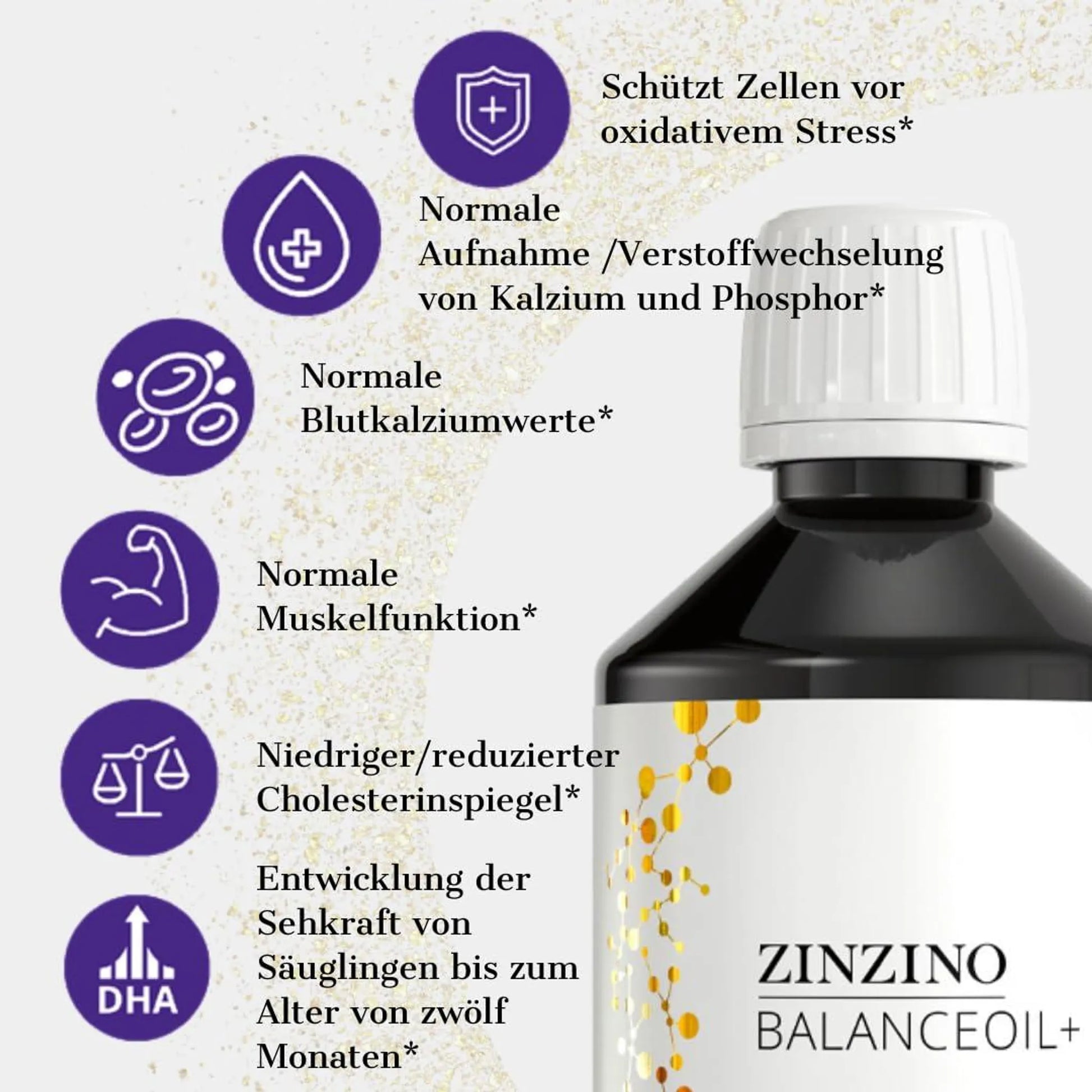 Zinzino Balance Oil+, Omega-3 (EPA ve DHA) içeriği ile zenginleştirilmiş Vitamin D takviyesi sunar. İçeriğindeki balık yağı ve soğuk pres zeytinyağı karışımı ile günlük beslenme rutininizi desteklemeyi amaçlayan bir formülasyona sahiptir.